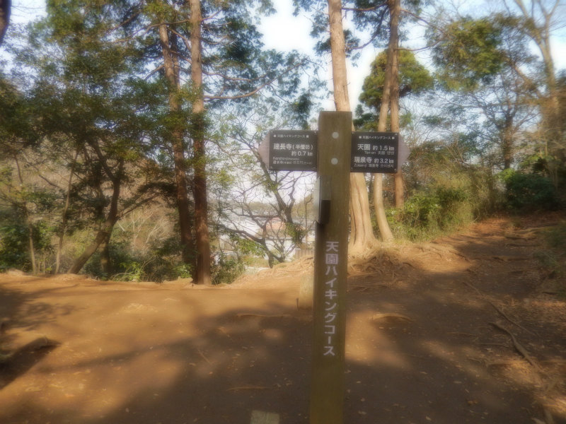 桜の名所を直進すると馬の背小径コースになる。 天園ハイキングコース12:49