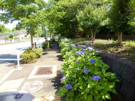 宮上中学校入口信号 八王子市立上柚木中学校前のあじさい
