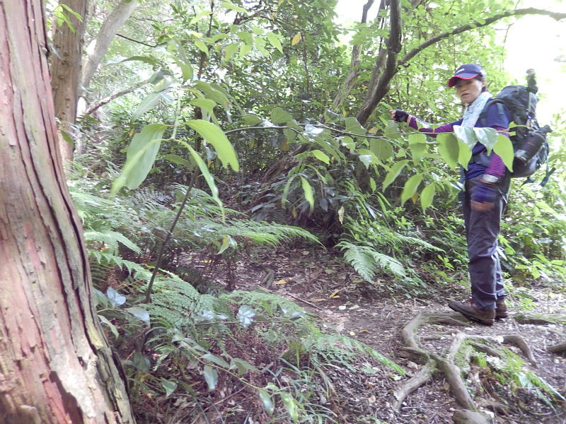 南中峠(六把峠)分岐左(西)に下る10:48 ガレ場悪路