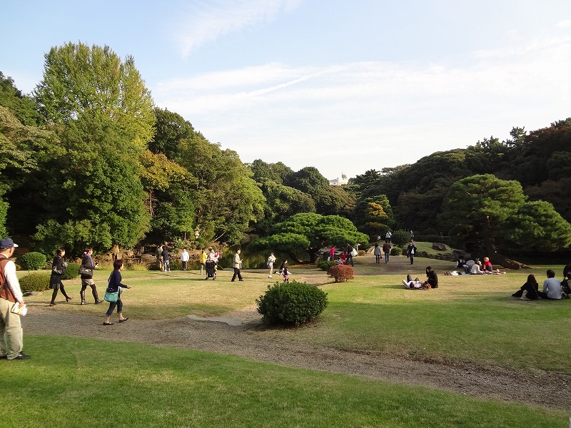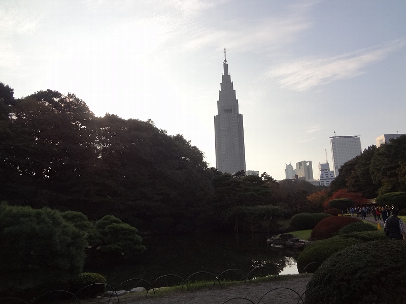神宮外苑から新宿御苑の日本庭園菊花壇展へ 聖徳記念絵画館前のイチョウの黄葉を楽しみに出かけたがまだ早い、青山通り2丁目246から絵画館を望むが少し色づいた程度だった。JR渋谷駅→宮益坂上→国連大学本部ビル・UNハウス前→表参道→善光寺→青山三丁目→外苑前→青山二丁目→御観兵榎→聖徳絵画館→信濃町交番でJR中央線を跨ぎ慶応病院の間を抜けて北里記念医学図書館→医学関係の建物を左右に見ながら新宿通りへ出る。国道20号線が地下に入る左側から鍵の手に曲がる石垣の間を抜け地下になった20号線の上を通り、大木戸門から新宿御苑に入る。大木戸休憩所→重要文化財指定・旧洋館御休所→菊花壇展中央入口→第一路地花壇→懸崖造り花壇→伊勢菊・丁字菊・嵯峨菊花壇→大作り花壇→江戸菊花壇→第二路地花壇→一文字菊・管物菊花壇→肥後菊花壇→大菊花壇→歴史建造物・旧御凉亭(水辺の涼を楽しむ)→千駄ヶ谷門→JR千駄ヶ谷駅