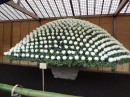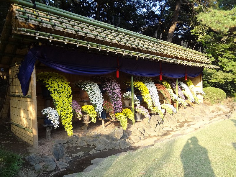 11月15日まで公開 皇室ゆかりの伝統を受け継ぐ、新宿御苑の菊花壇 日本に園芸品種の菊が渡来したのは、奈良時代末から平安時代はじめといわれています。そのご、室町、江戸時代と發達をとげ、明治元年(1868)に菊が皇室の紋章に定められました。 明治11年(1878)、宮内省は皇室を中心として菊を鑑賞する初めての『菊花拝観』を赤坂の仮皇居で催しました。展示用の菊は、当初は赤坂離宮内で栽培されていましたが、明治37年(1904)より、新宿御苑でも菊の栽培が始まりました。そして昭和4年(1929)カラは、観菊会も御苑で行われるようになりました。 大正から昭和にかけては、観菊会の展示の規模、技術、デザインなどがもっとも充実した時期で、これらによって新宿御苑はパレスガーデンとして、広く海外に知られるようになりました。【菊花壇展のパンフレットから】