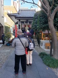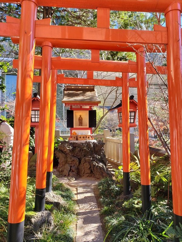 大黒坂を下ると、童謡、赤い靴の、きみちゃん像を北に、十番商店街を通り 大通りの信号を渡ると十番稲荷神社が建つ、