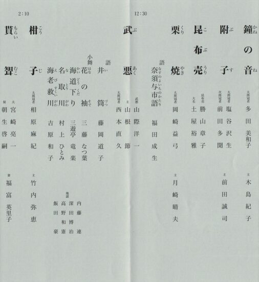 東京ハイキング協会の、仲間、大矢さんのご招待により今年も、セルリアンタワー能楽堂に行く、朝、9時半の開演を待って、入場して、会が終わる、午後5時半、閉演まで、昼飯抜きで、一日中狂言三昧でした。野村万之介十三回忌追善公演とかで、野村万作さん、野村萬斎さんが出場者を助けていました。